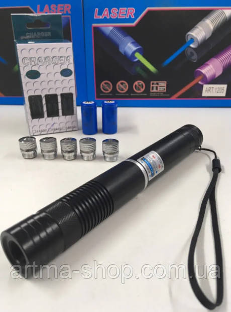 Потужна лазерна указка цілевказівник Ліхтар лазер синій YX-B008, 5 насадок 50000mW, SP2, гарної якості